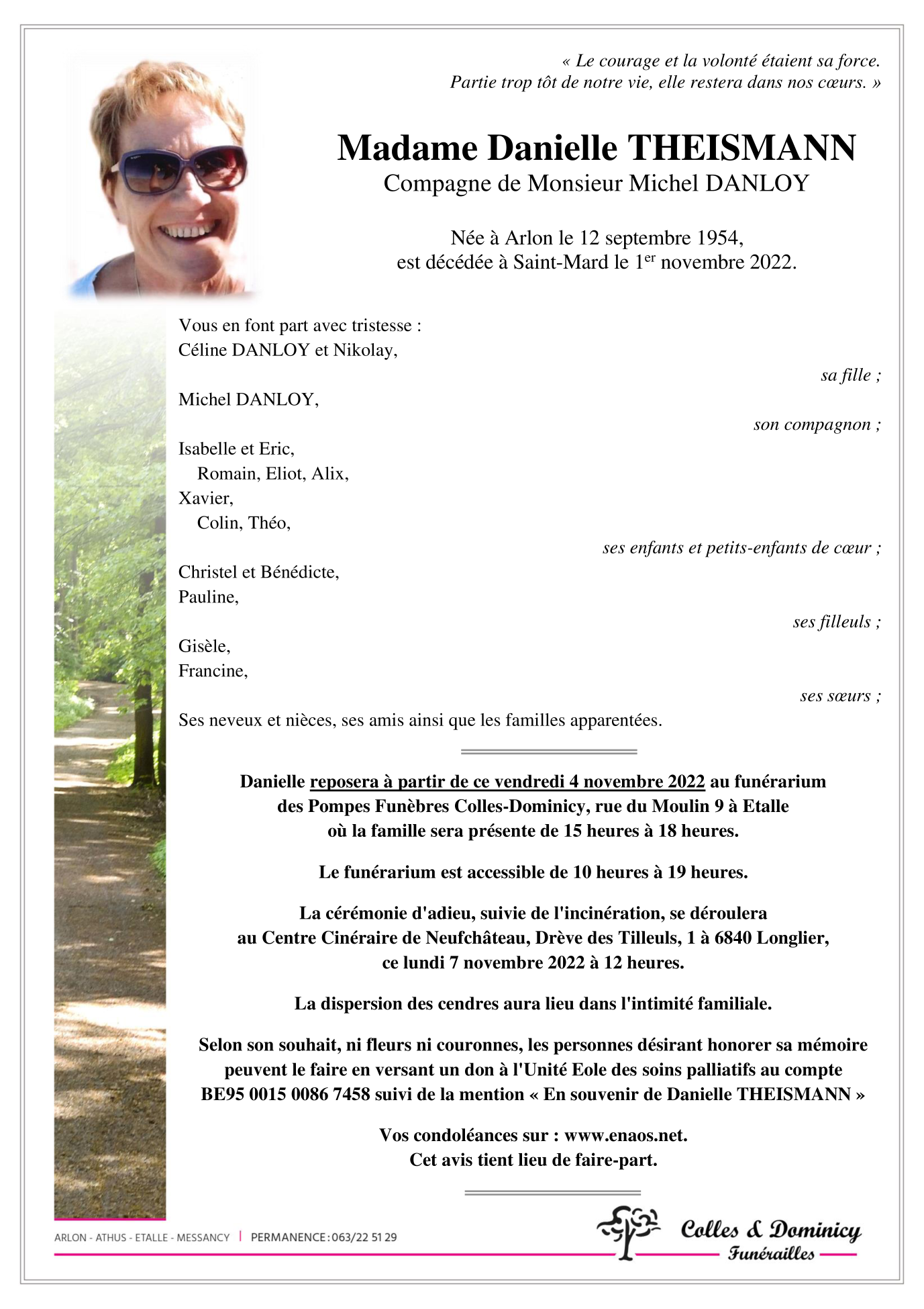 Décédée à Saint-Mard (6762) le mardi 1 novembre 2022 à l'âge de 68 ans