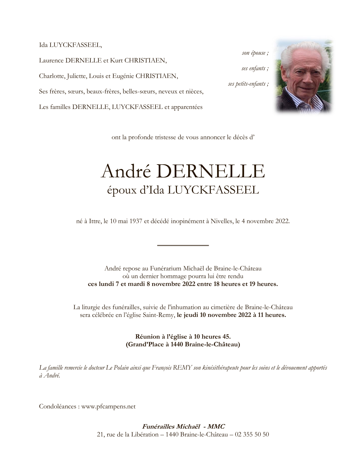 Fallecido en Nivelles (1400) el viernes, 4 de noviembre de 2022 a la edad de 85 años