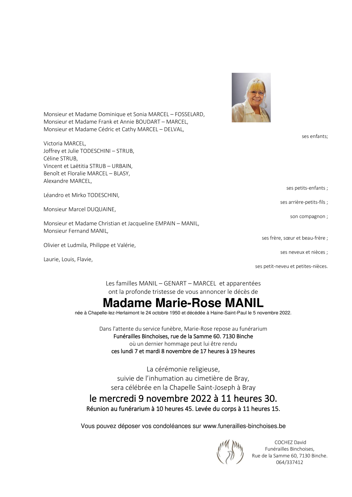 Died in La Louvière (7100) on 05 November 2022 at the age of 72 years