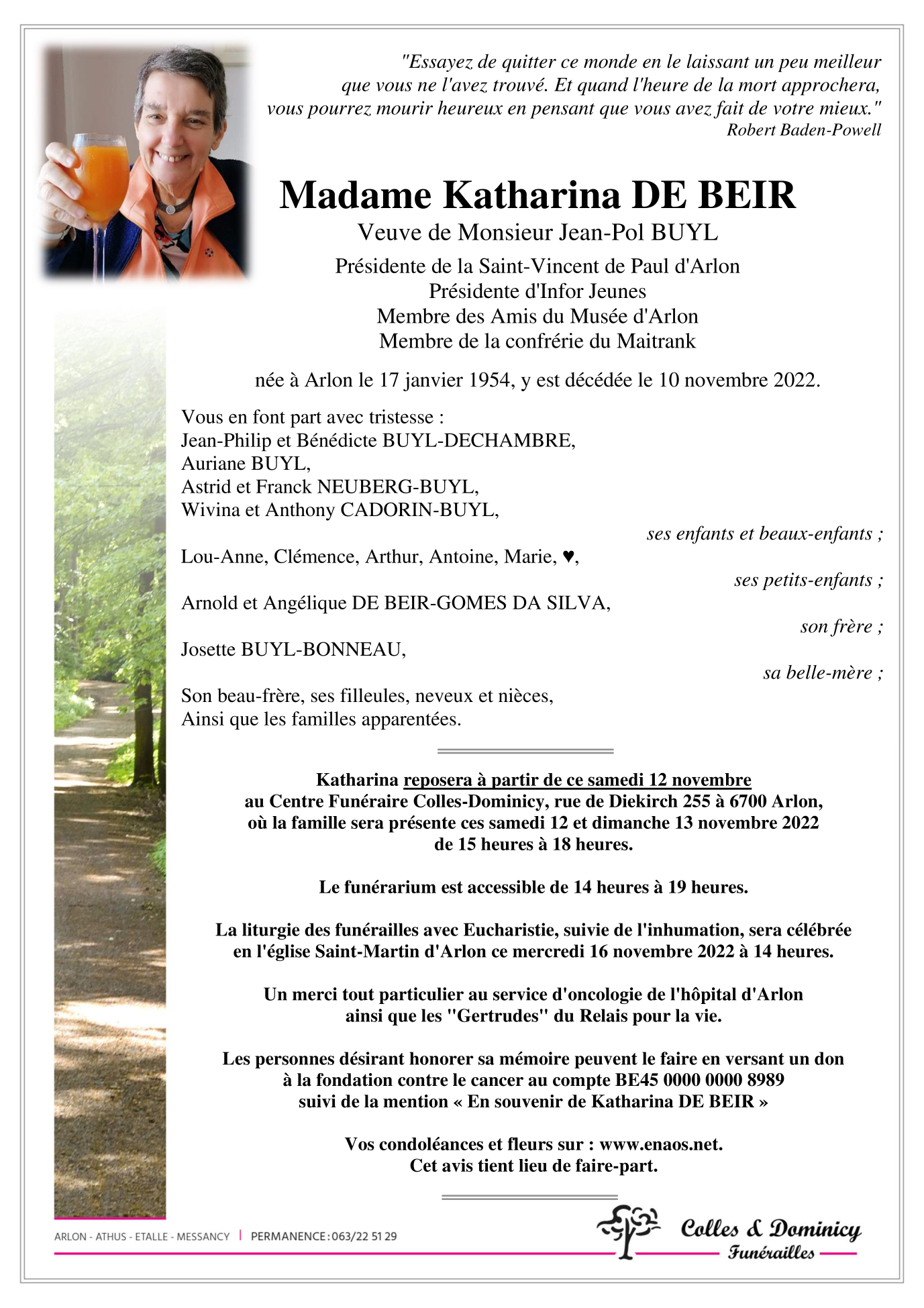 Died in Arlon (6700) on 10 November 2022 at the age of 68 years