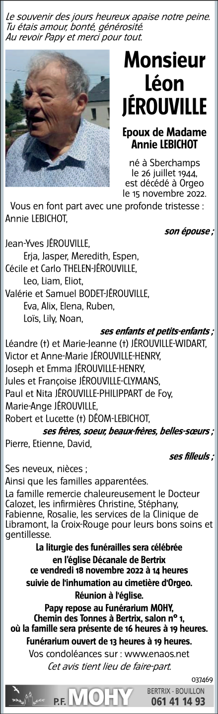 Décédé à Orgeo (6880) le mardi 15 novembre 2022 à l'âge de 78 ans