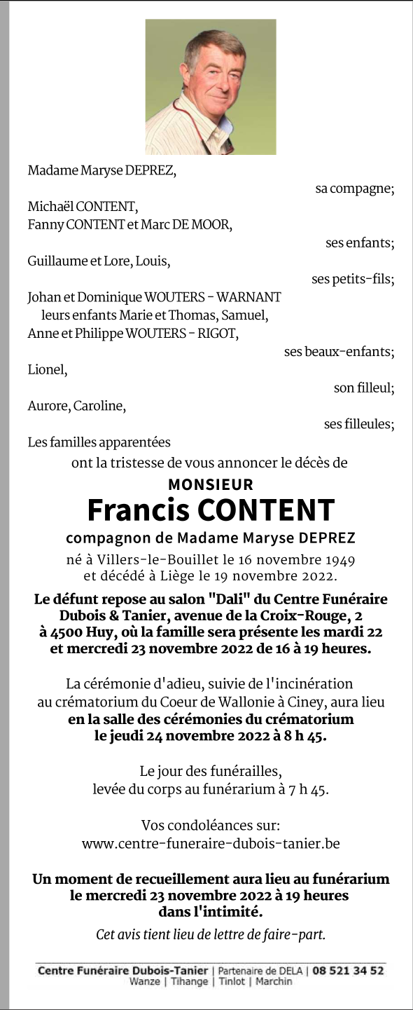 Décédé à Liège (4000) le samedi 19 novembre 2022 à l'âge de 73 ans