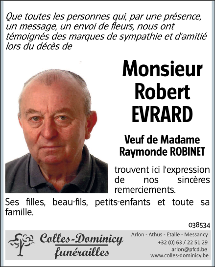 Overleden te Yvoir (5530) op maandag 7 november 2022 op 85-jarige leeftijd