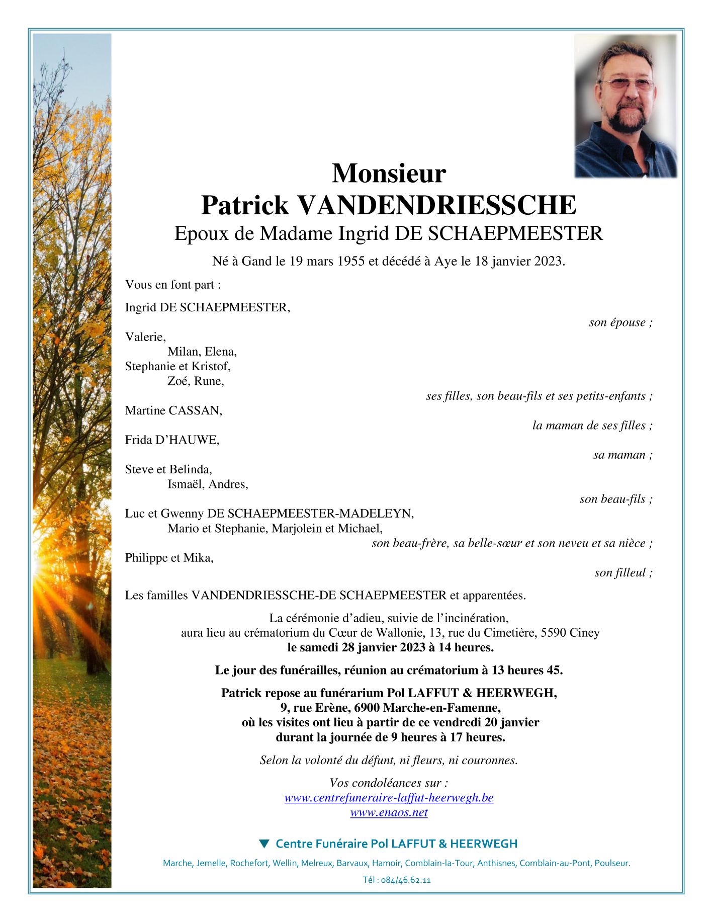 Décédé à Aye (6900) le mercredi 18 janvier 2023 à l'âge de 67 ans