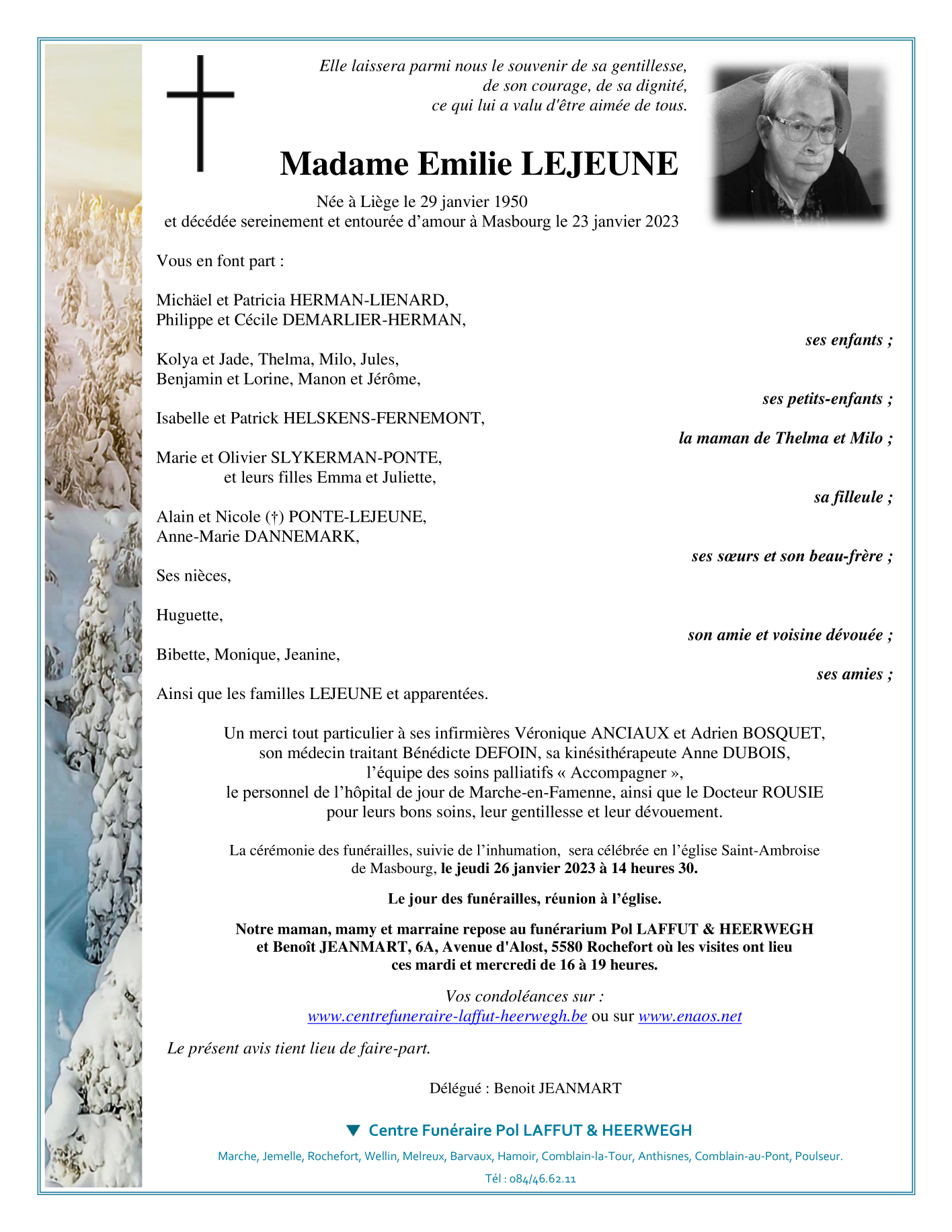Décédée à Masbourg (6953) le lundi 23 janvier 2023 à l'âge de 72 ans