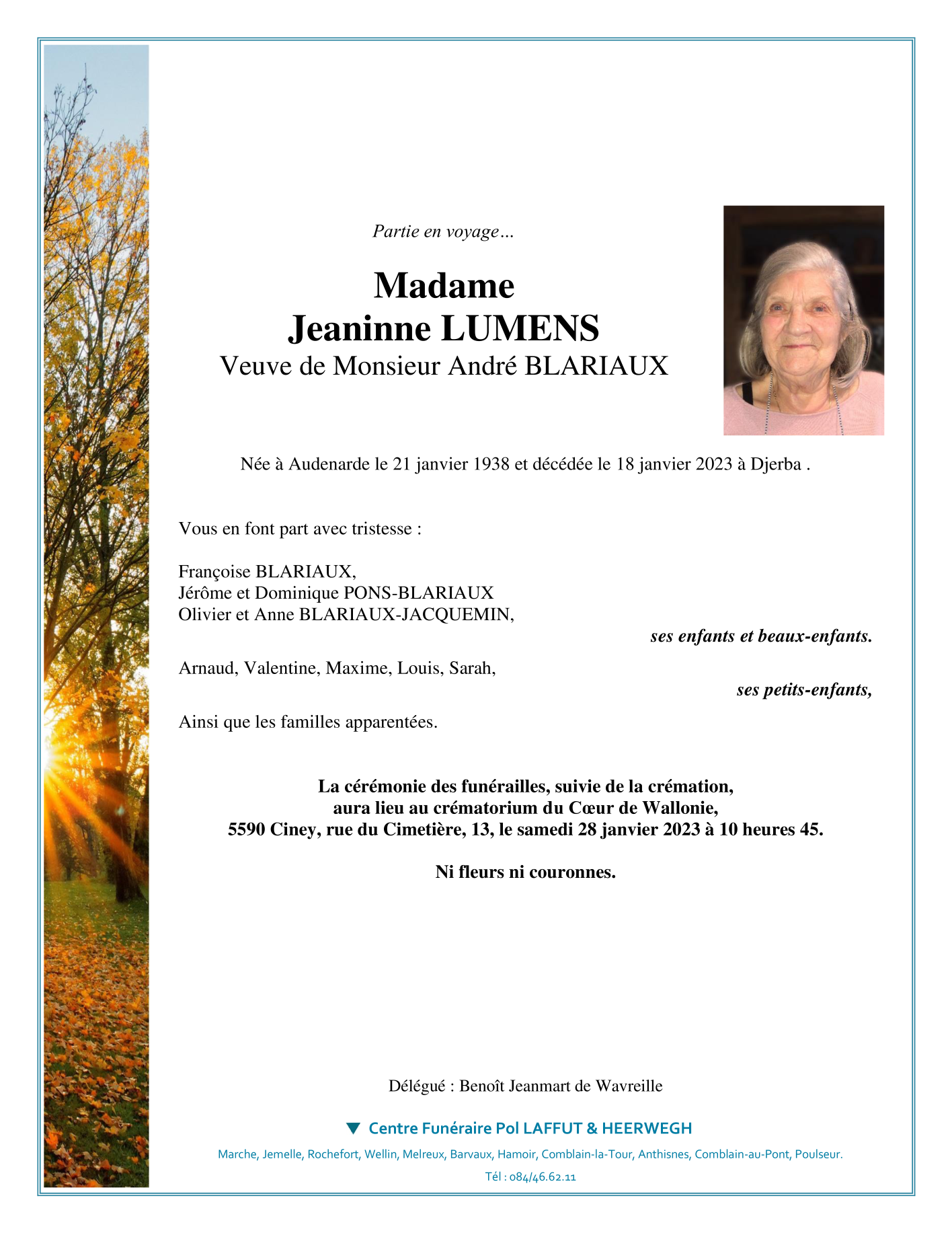 Veuve de Monsieur André BLARIAUX