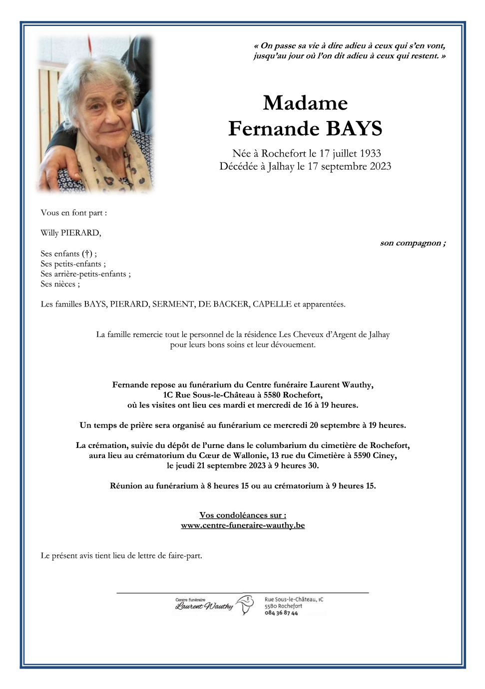 Madame Fernande BAYS