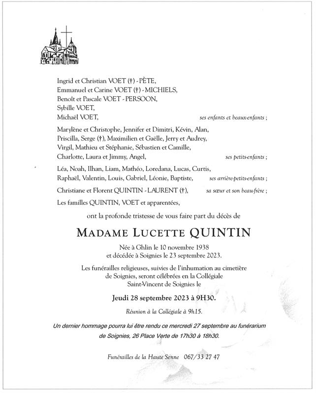 Fallecida en Soignies (7060) el sábado, 23 de septiembre de 2023 a la edad de 84 años