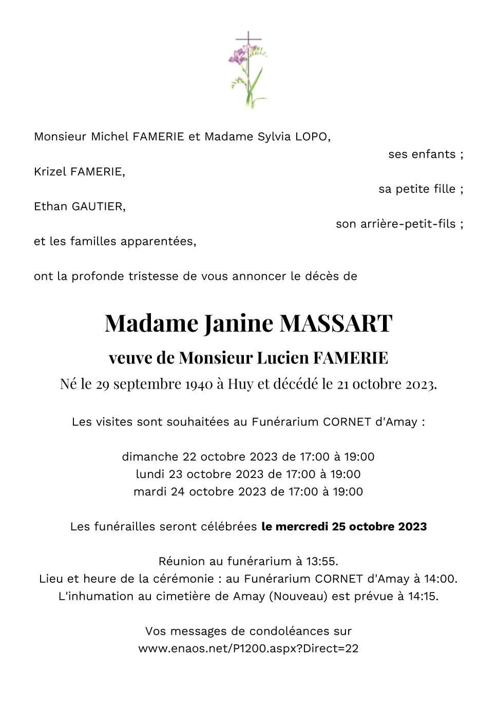 Veuve de Monsieur Lucien FAMERIE