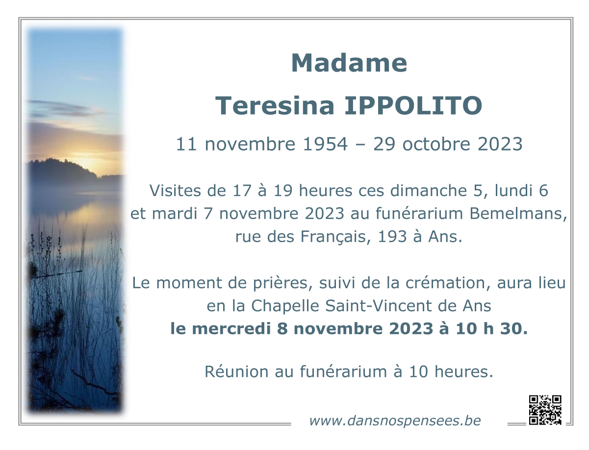 Décédée à Liège (4000) le dimanche 29 octobre 2023 à l'âge de 68 ans