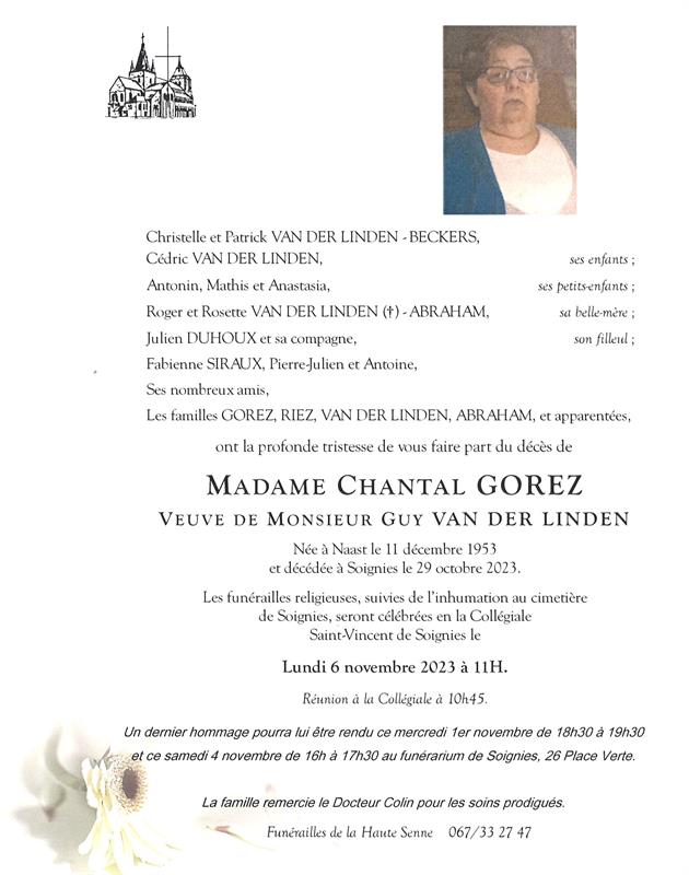 Fallecida en Soignies (7060) el domingo, 29 de octubre de 2023 a la edad de 69 años