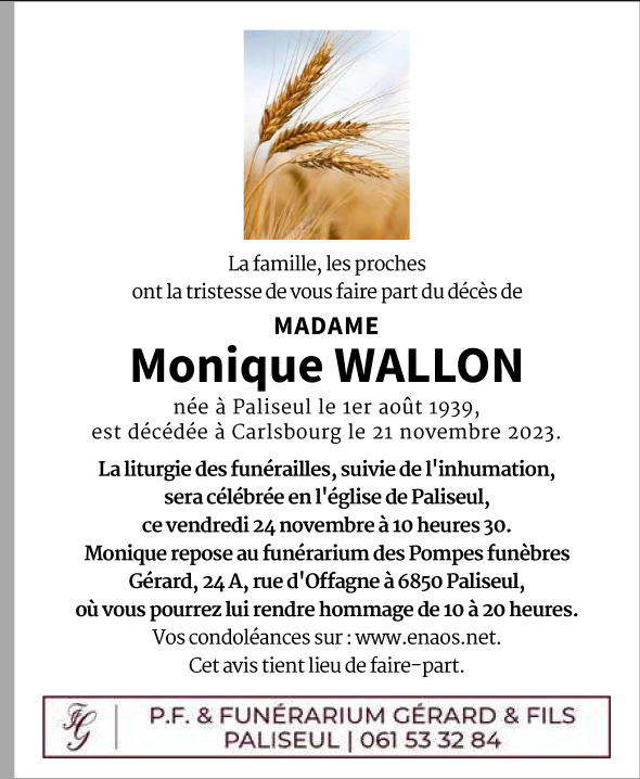 Décédée à Carlsbourg (6850) le mardi 21 novembre 2023 à l'âge de 84 ans