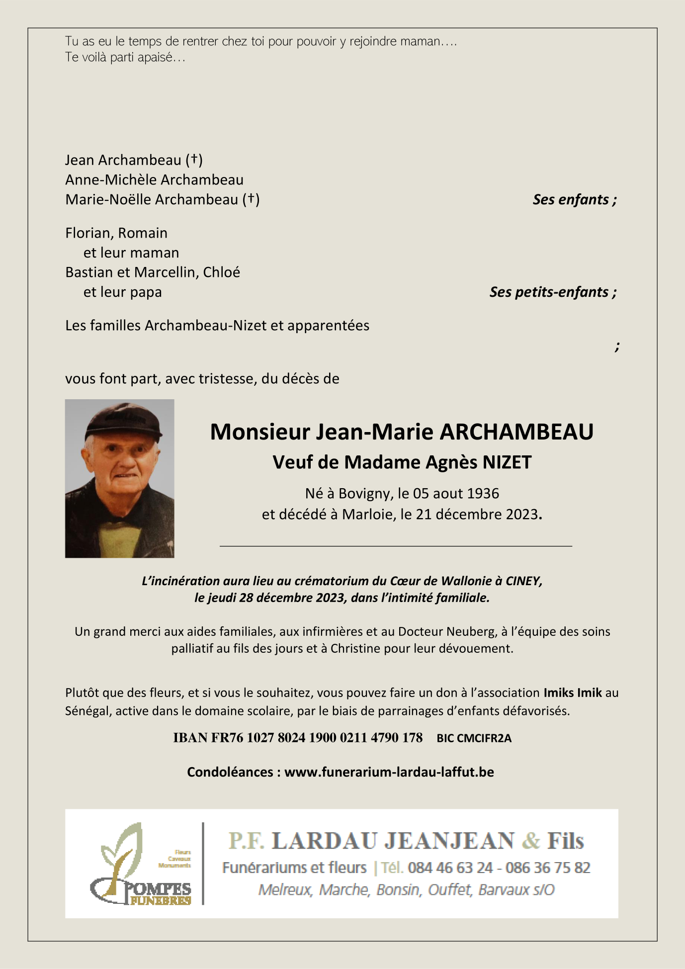 Décédé à Marloie (6900) le jeudi 21 décembre 2023 à l'âge de 89 ans