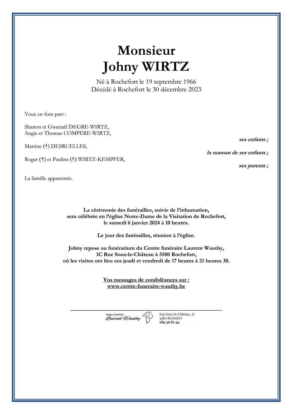 Décédé à Rochefort (5580) le samedi 30 décembre 2023 à l'âge de 57 ans