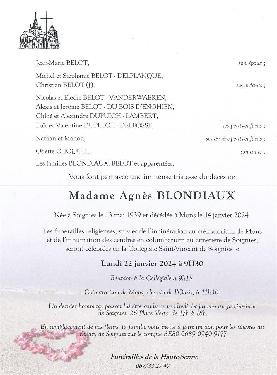 Fallecida en Mons (7000) el domingo, 14 de enero de 2024 a la edad de 84 años
