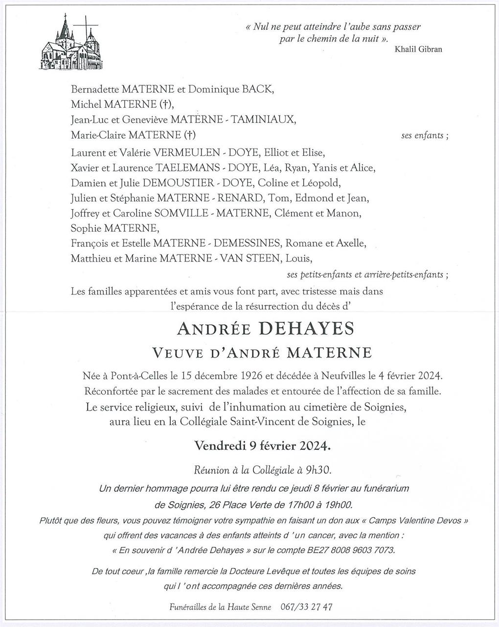 Veuve de Monsieur André MATERNE