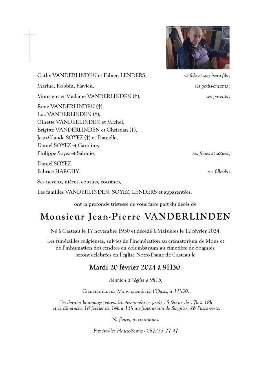 Décédé à Maisières (7020) le lundi 12 février 2024 à l'âge de 73 ans