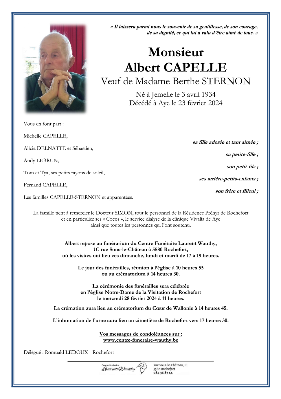 Né à Jemelle (5580) le mardi 3 avril 1934