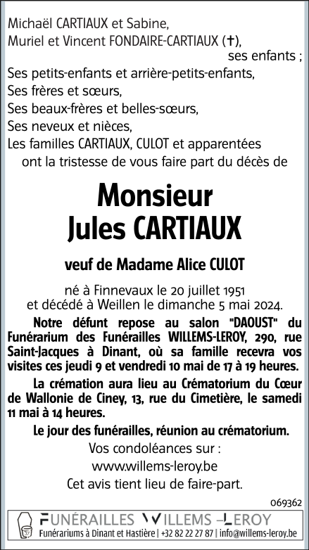 Né à Finnevaux (5560) le vendredi 20 juillet 1951