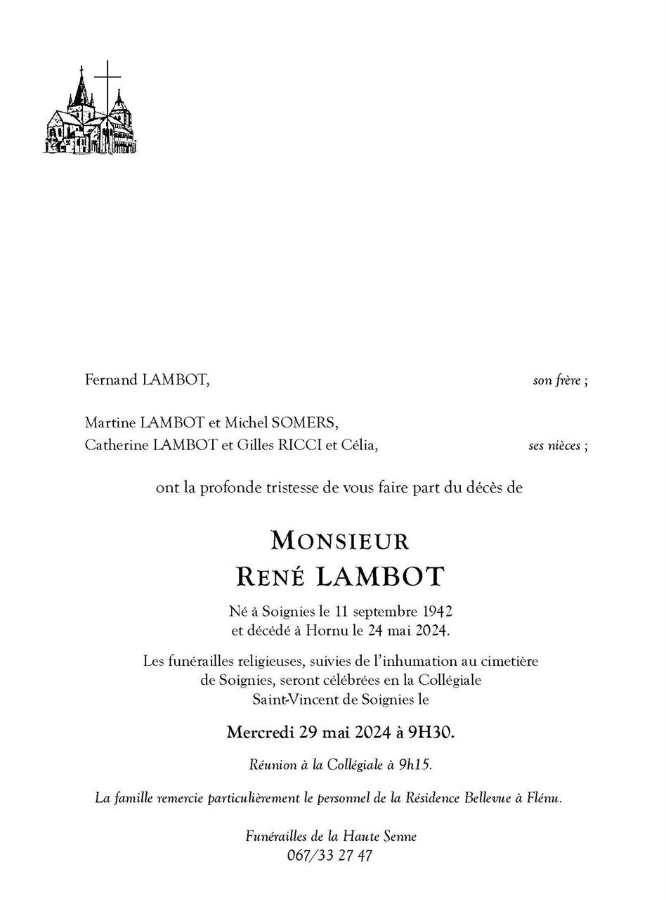 Died in Hornu (7301) on 24 May 2024 at the age of 81 years