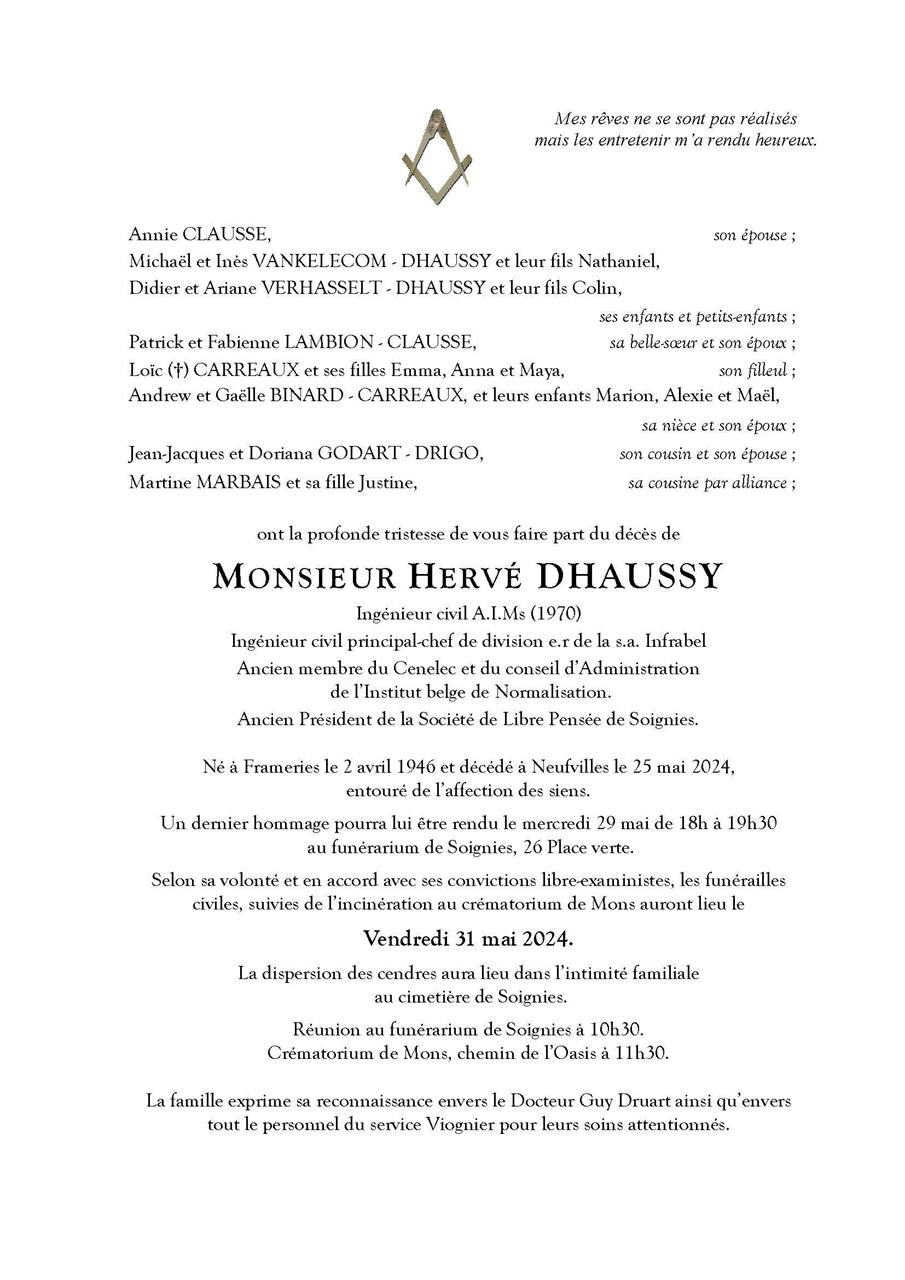 Overleden te Neufvilles (7063) op zaterdag 25 mei 2024 op 78-jarige leeftijd