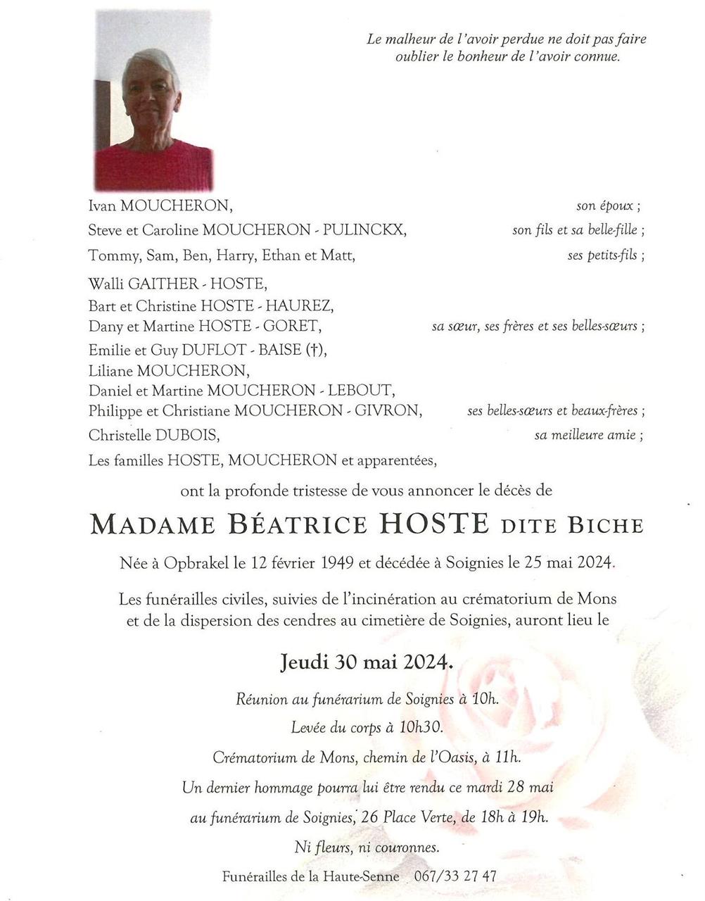 Fallecida en Soignies (7060) el sábado, 25 de mayo de 2024 a la edad de 75 años