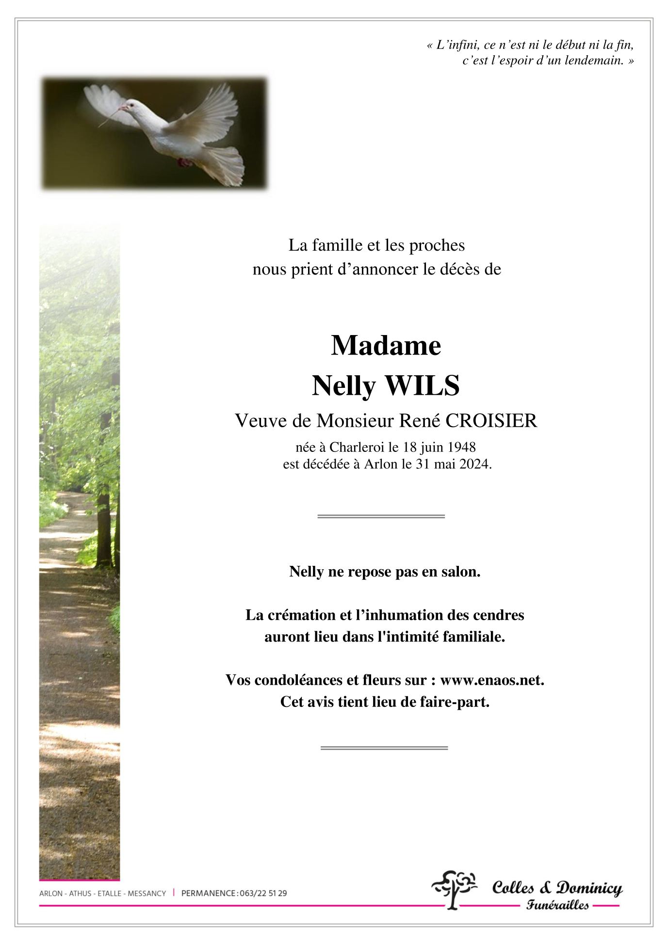 Décédée à Arlon (6700) le mercredi 5 juin 2024 à l'âge de 75 ans