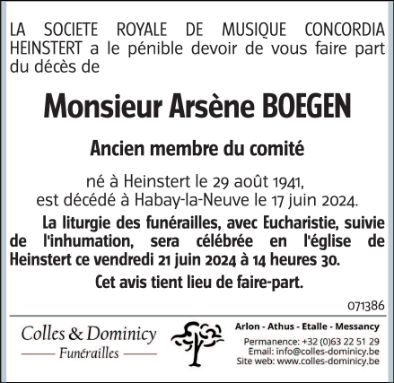 Décédé à Habay (6720) le lundi 17 juin 2024 à l'âge de 82 ans