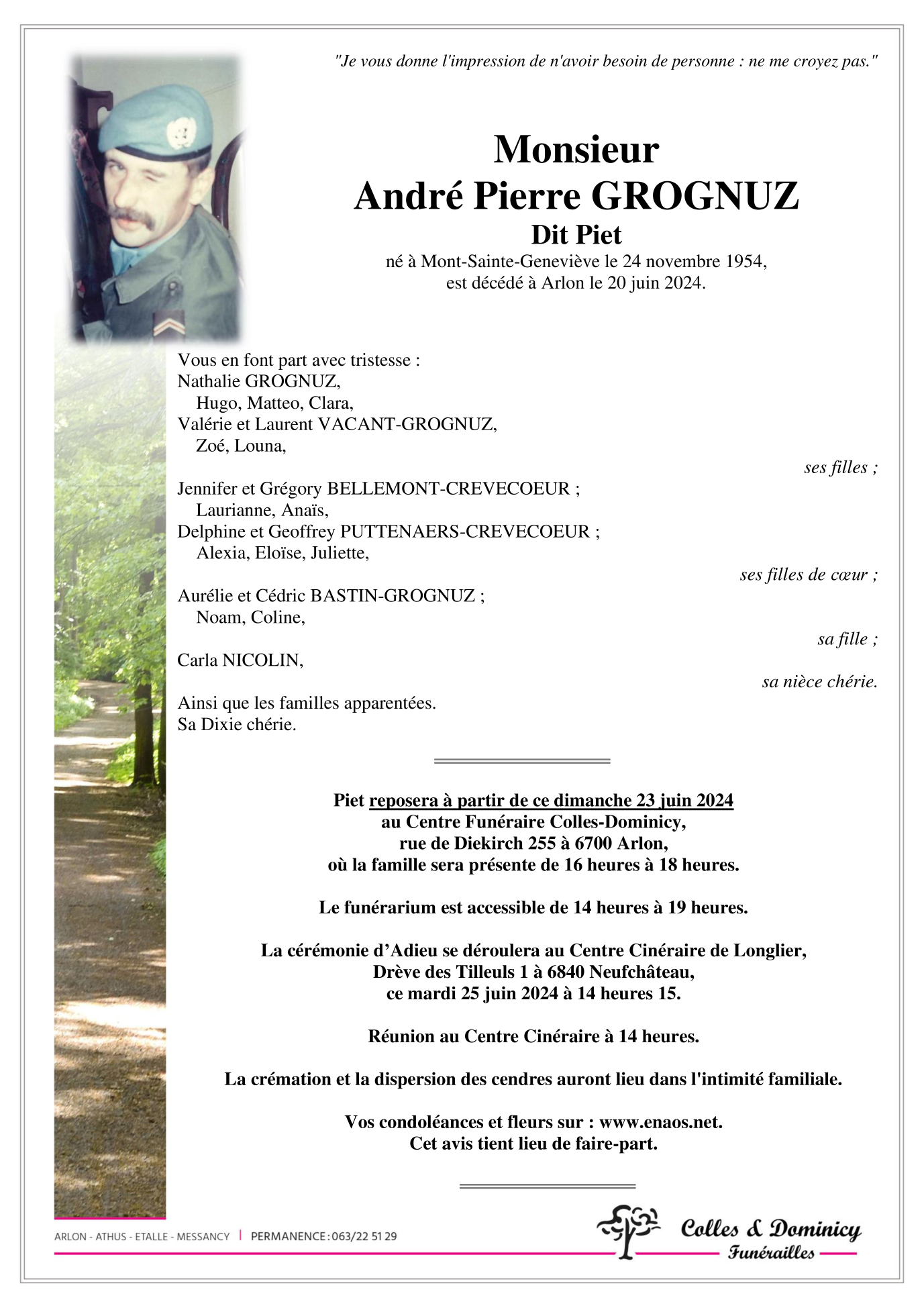 Fallecido en Arlon (6700) el jueves, 20 de junio de 2024 a la edad de 69 años
