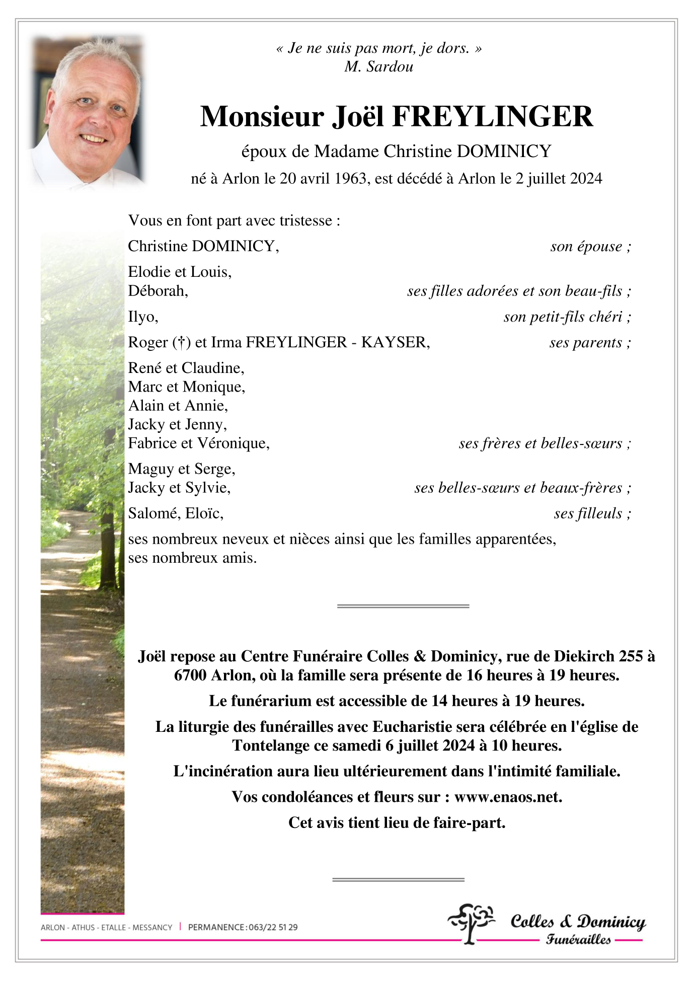 Décédé à Arlon (6700) le mardi 2 juillet 2024 à l'âge de 61 ans