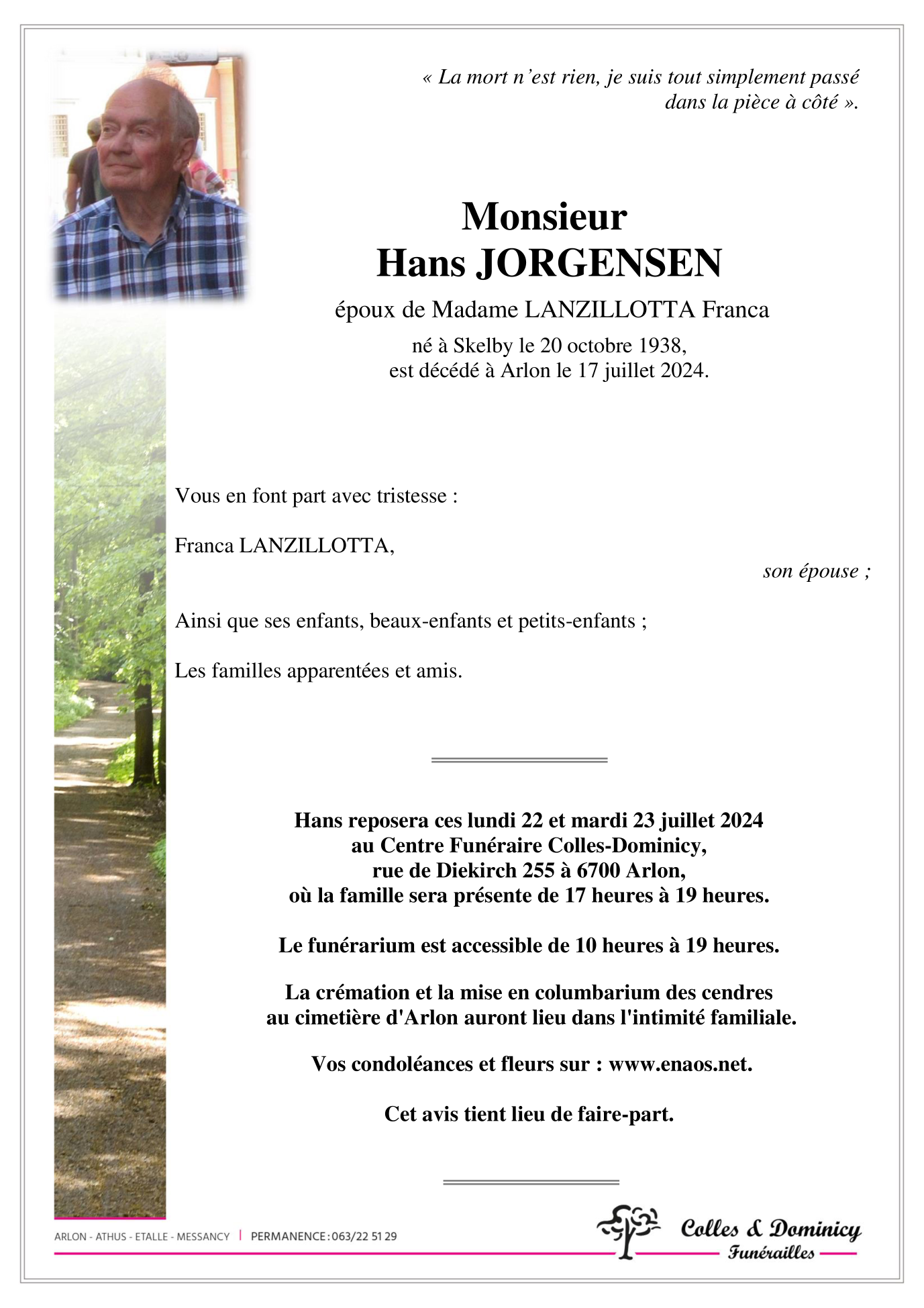 Décédé à Arlon (6700) le mercredi 17 juillet 2024 à l'âge de 85 ans