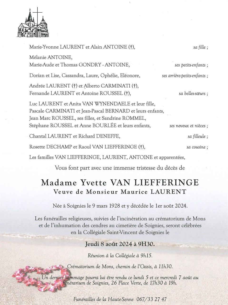 Décédée à Soignies (7060) le jeudi 1 août 2024 à l'âge de 96 ans