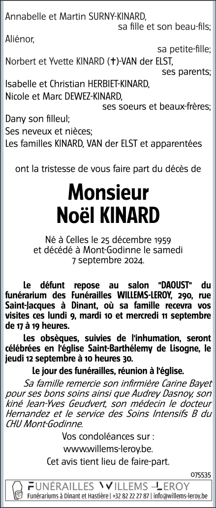 Décédé à Yvoir (5530) le samedi 7 septembre 2024 à l'âge de 64 ans