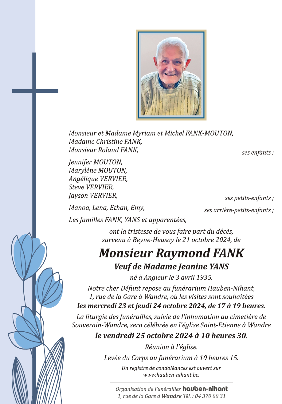 Overleden te Beyne-Heusay (4610) op maandag 21 oktober 2024 op 89-jarige leeftijd