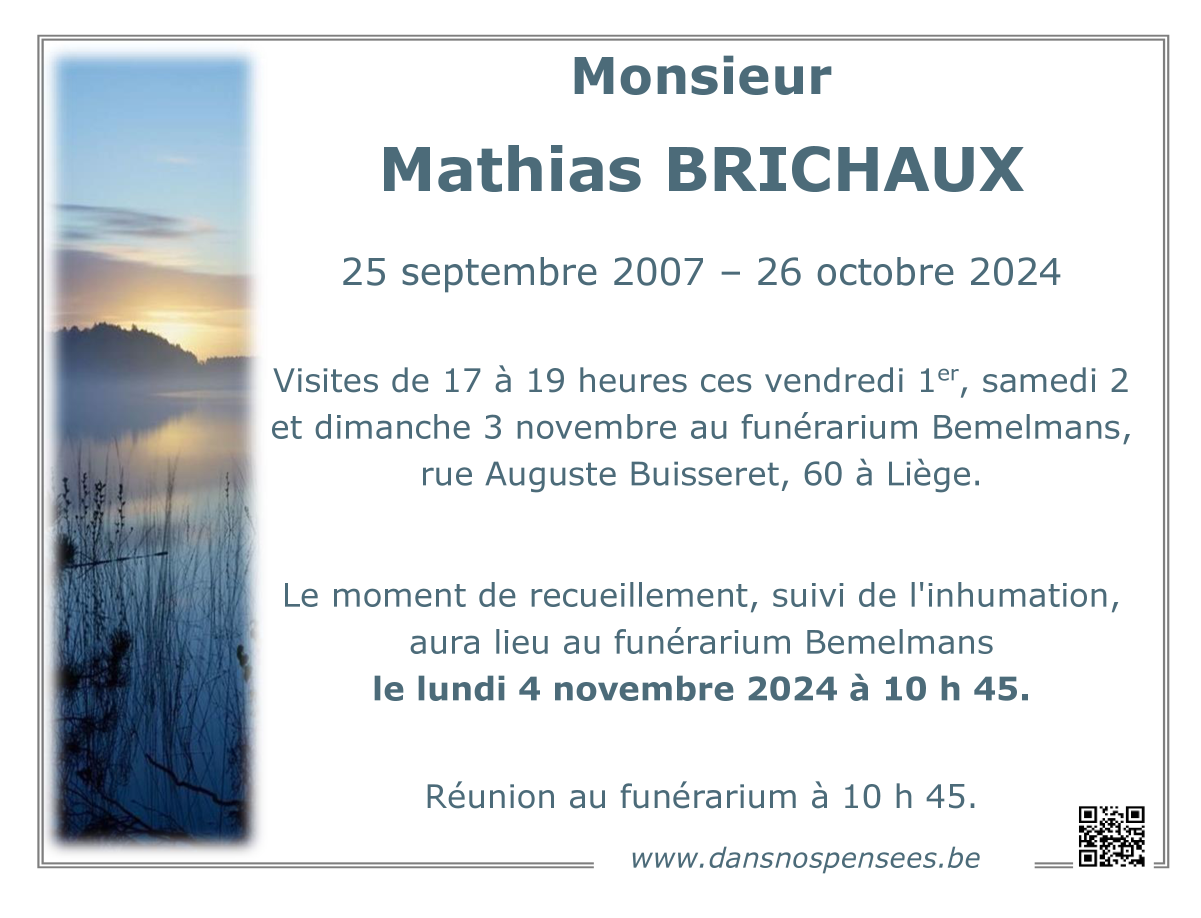 Décédé à Liège (4000) le samedi 26 octobre 2024 à l'âge de 17 ans