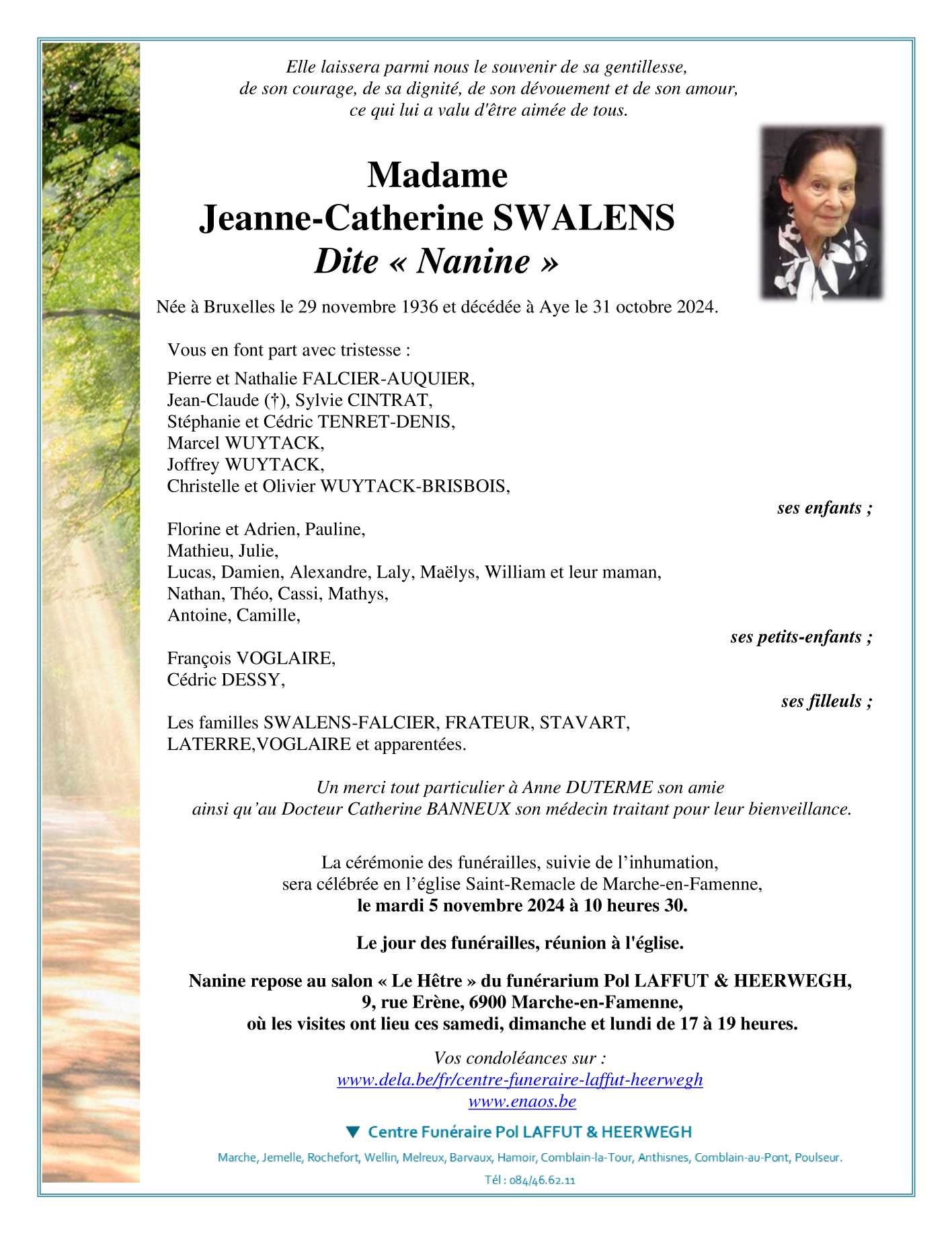 Madame Jeanne-Catherine dite "Nanine" SWALENS