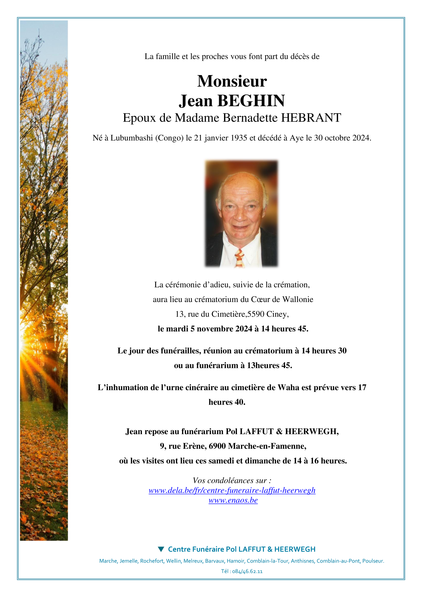 Overleden te Aye (6900) op woensdag 30 oktober 2024 op 89-jarige leeftijd