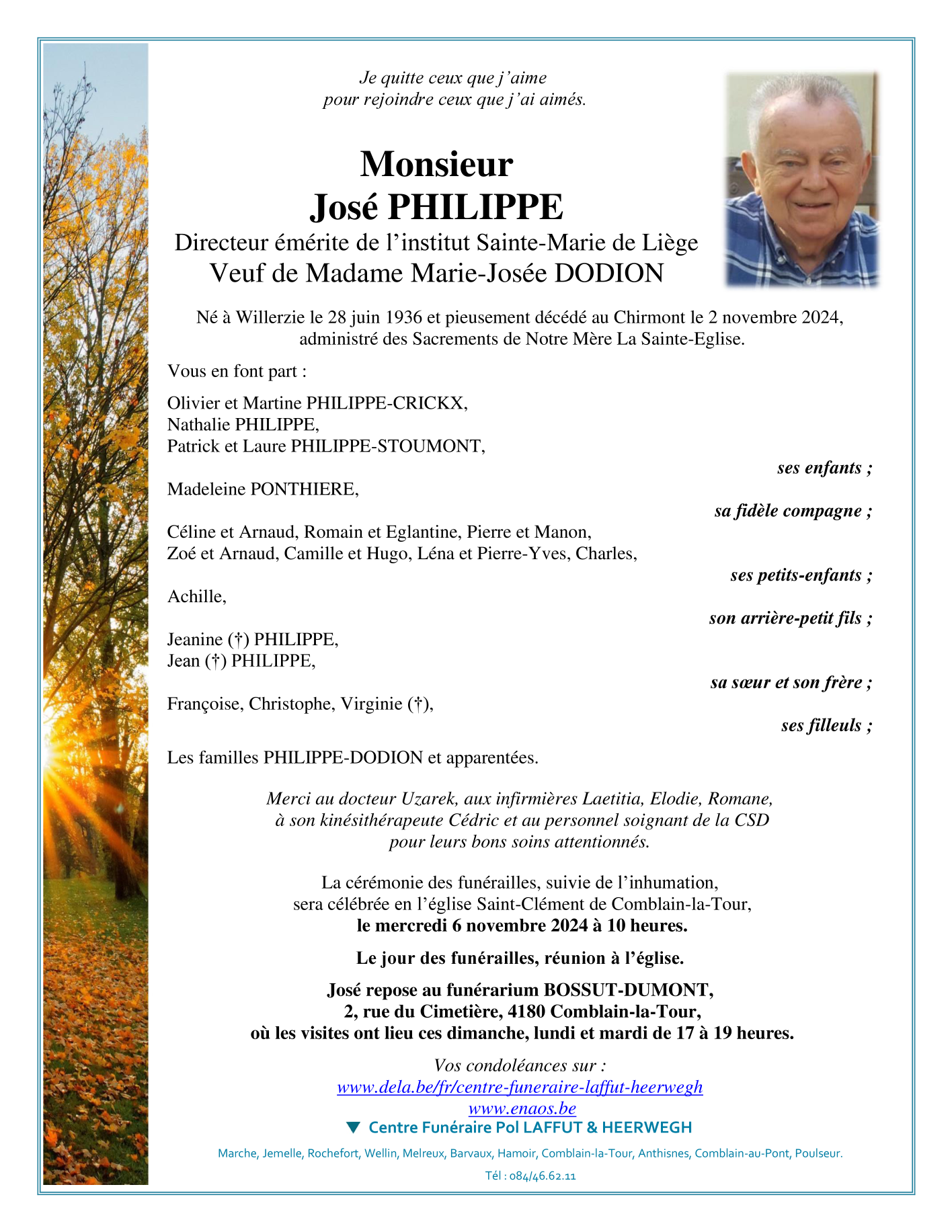 Décédé à Comblain-Fairon (4180) le samedi 2 novembre 2024 à l'âge de 88 ans