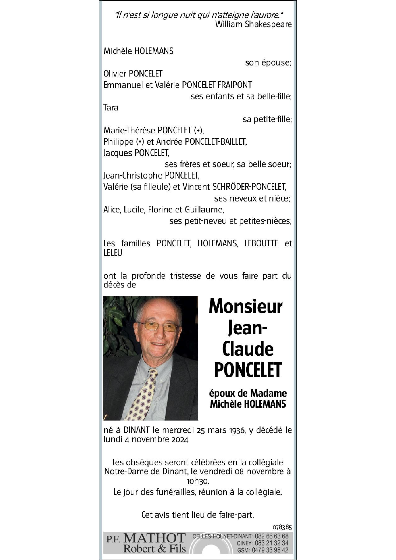 Décédé à Dinant (5500) le lundi 4 novembre 2024 à l'âge de 88 ans