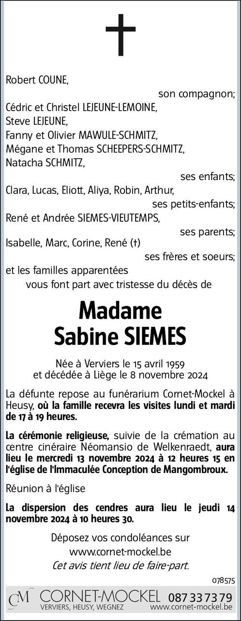 Décédée à Liège (4000) le vendredi 8 novembre 2024 à l'âge de 65 ans