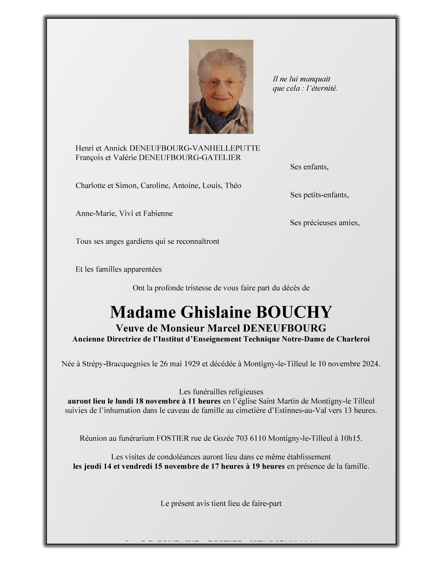 Madame Ghislaine DENEUFBOURG née BOUCHY