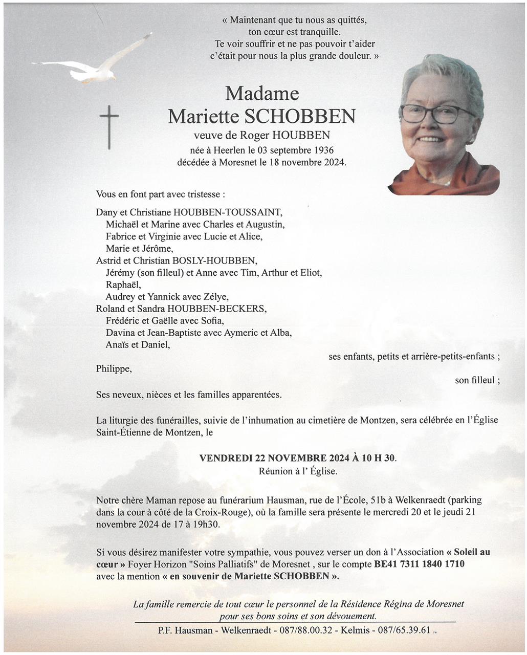 Madame Mariette SCHOBBEN