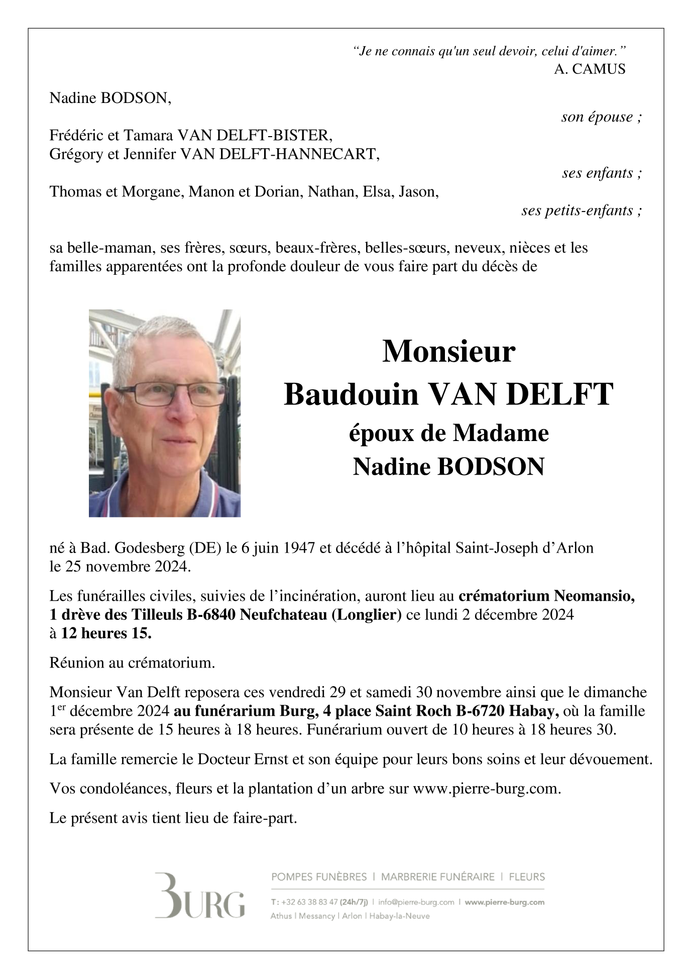 Fallecido en Arlon (6700) el lunes, 25 de noviembre de 2024 a la edad de 77 años