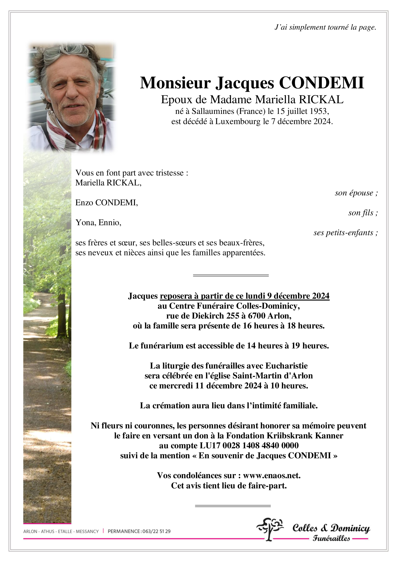 Fallecido en Luxembourg/Barble  (1210, Luxemburgo) el sábado, 7 de diciembre de 2024 a la edad de 71 años