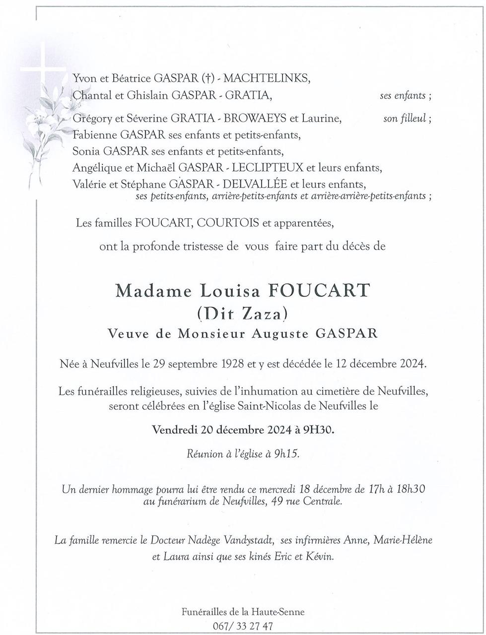 Décédée à Neufvilles (7063) le jeudi 12 décembre 2024 à l'âge de 96 ans