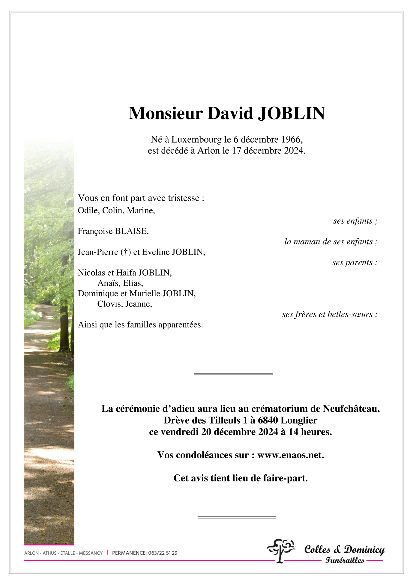 Décédé à Arlon (6700) le mardi 17 décembre 2024 à l'âge de 58 ans
