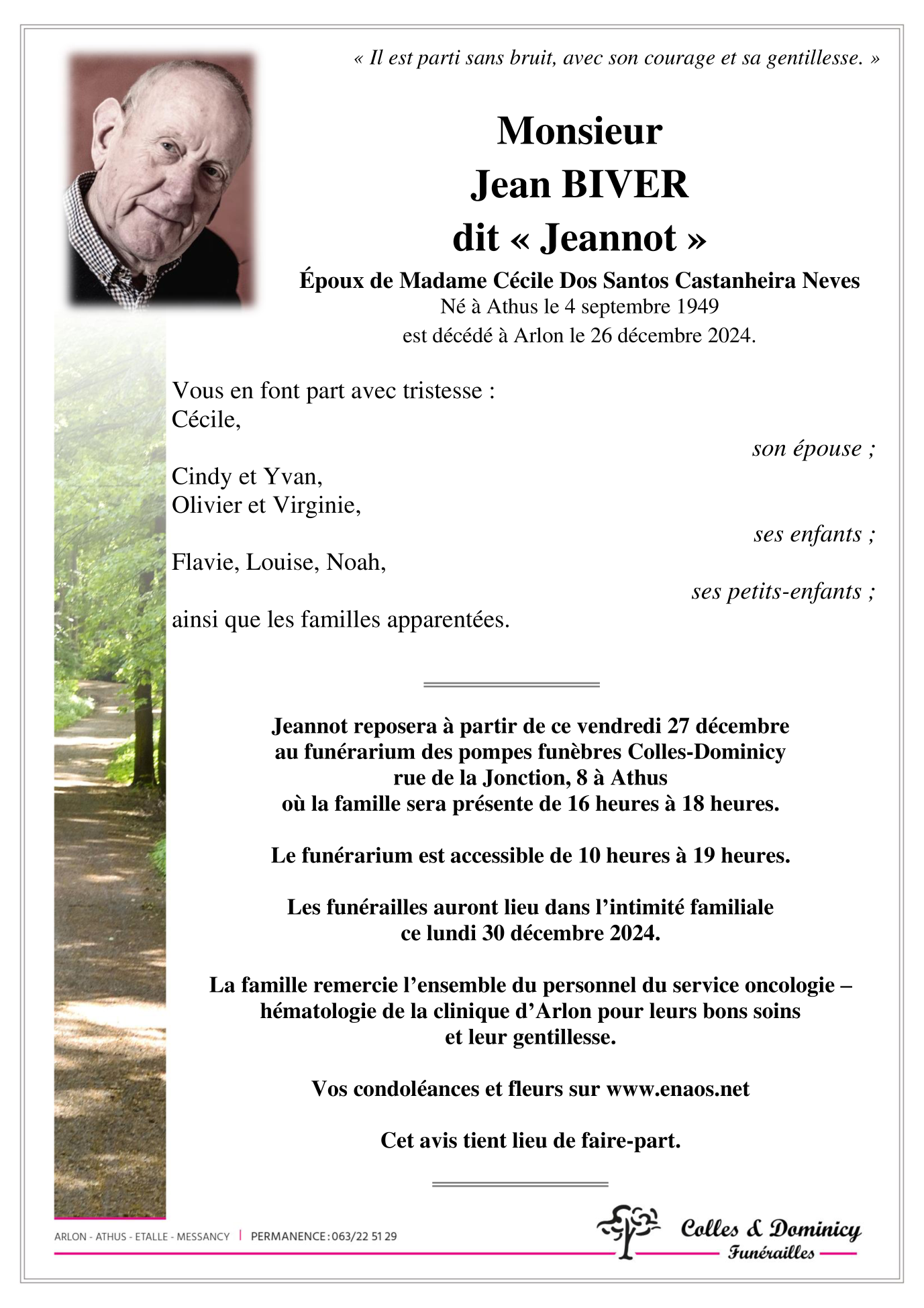 Décédé à Arlon (6700) le jeudi 26 décembre 2024 à l'âge de 75 ans