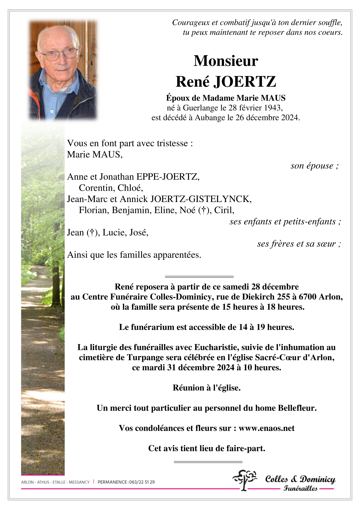 Fallecido en Aubange (6790) el jueves, 26 de diciembre de 2024 a la edad de 81 años