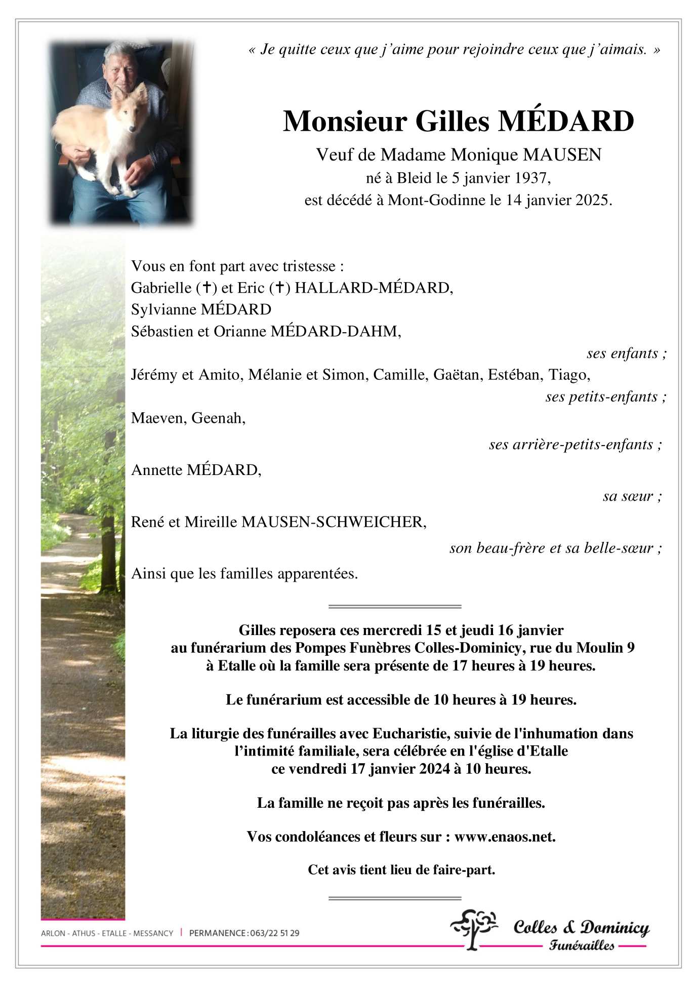 Fallecido en Yvoir (5530) el martes, 14 de enero de 2025 a la edad de 88 años