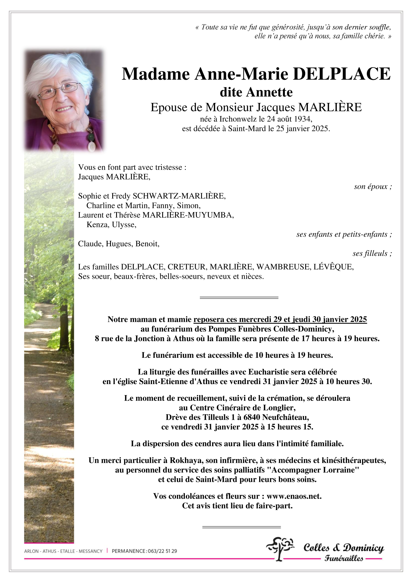 Died in Saint-Mard (6762) on 25 January 2025 at the age of 90 years